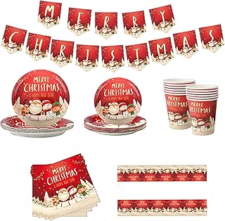 Christmas Party Tableware Set 16 Guests,Xmas Table Decorations Disposable Dinner..
