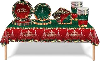 MOMAHUA 69 PCS Christmas Paper Tableware Set for 16 Guests, Red Green Xmas Table..